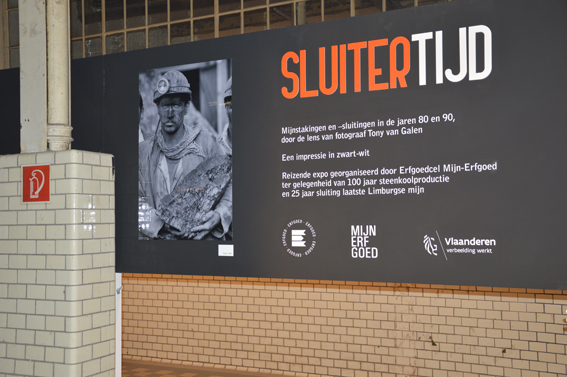 Une exposition itinérante a également été mise sur pied par l’association Erfgoedcel Mijn-Erfgoed, sous la houlette de Leen ROELS et Leen GOS, deux personnes bien connues dans le monde du patrimoine minier. Intitulée Sluitertijd, elle présente les heures douloureuses qui ont précédé la fermeture des mines du bassin campinois dans les années 1980 et 1990, vues de l’objectif du journaliste et photographe Tony van GALEN.