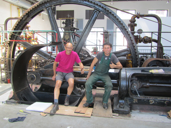 Par ailleurs, nos amis de ETWIE ont organisé une visite de nos machines par des experts flamands du patrimoine industriel. Ainsi, des représentants du Musée de la chaussure d’Izegem nous ont donné de nombreuses pistes intéressantes pour l’entraînement de la machine à vapeur par moteur de friction, ce qui était notre souhait.