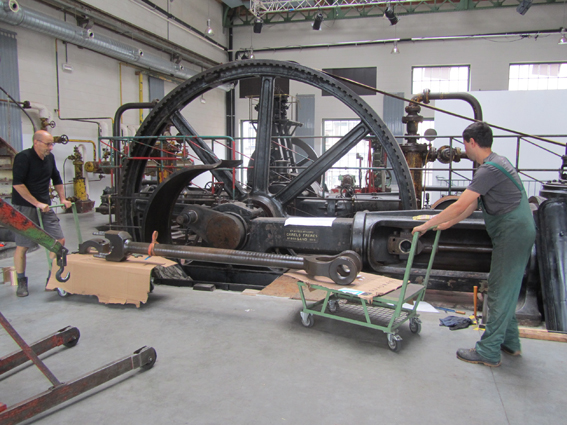Ainsi, une première phase en janvier et février de cette année nous a permis d'obtenir des résultats exceptionnels. En effet, notre équipe est parvenue à remettre complètement en état de marche le pont roulant, ainsi qu'à rendre sa splendeur d'antan et remettre en mouvement le compresseur De La Vergne, dont la dernière mise en marche connue date de près de 100 ans.