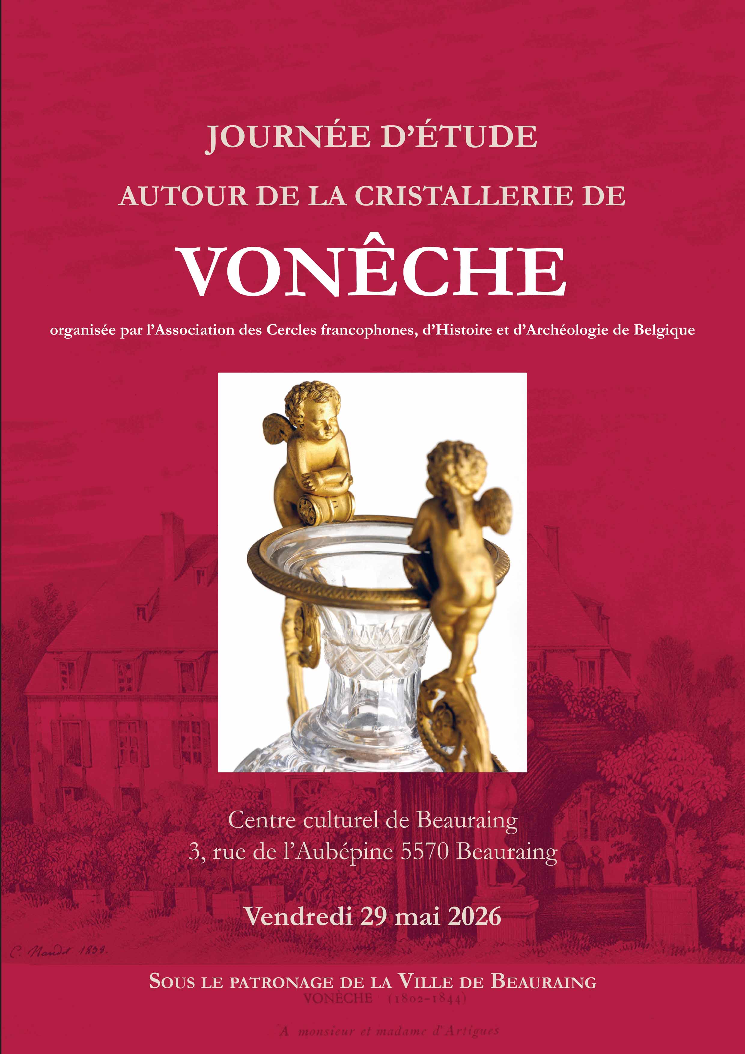 L’Association des Cercles francophones, d’Histoire et d’Archéologie de Belgique vous convie le vendredi 29 mai 2026 à une journée d'étude autour de la cristallerie Vonêche organisée au Centre culturel de Beauraing 3, rue de l’Aubépine 5570 Beauraing. Retrouvez ici le programme et les informations pratiques