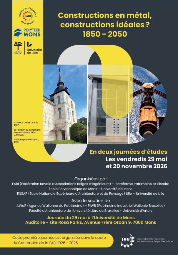 La FABI (Fédération Royale d’Associations Belges d’Ingénieurs), la Faculté Polytechnique de l’UMons et l’Ecole Nationale Supérieure d’Architecture et du Paysage de l’Université de Lille organisent deux journées d’études ayant pour titre :