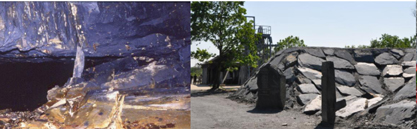 Noyant la G. : "La Mine Bleue", anciennes Ardoisières Angevines de St-Blaise, "chambrées" visitables à -126 m. Sur le "Chemin des Ardoisières", un parcours de la perrière médiévale à la mine ardoisière du XXè siècle, au Mémorial des perreyeux.