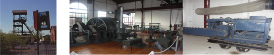 Musée de l’Ardoise de Renazé, au Puits de Longchamp, la technologie de l'industrie ardoisière, de la machine d'extraction au poste de travail de l'atelier de fente.